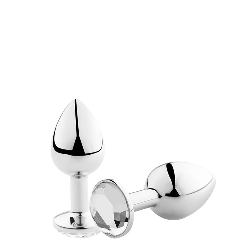 Plug anal em alumínio, grande, com aplicação de uma pedra colorida em sua base.
