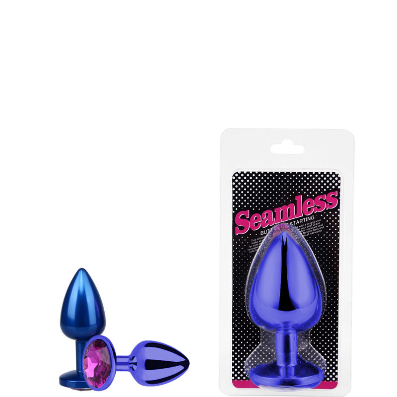 Plug anal em metal pequeno, possui em sua base uma pedra colorida lapidada como uma jóia.